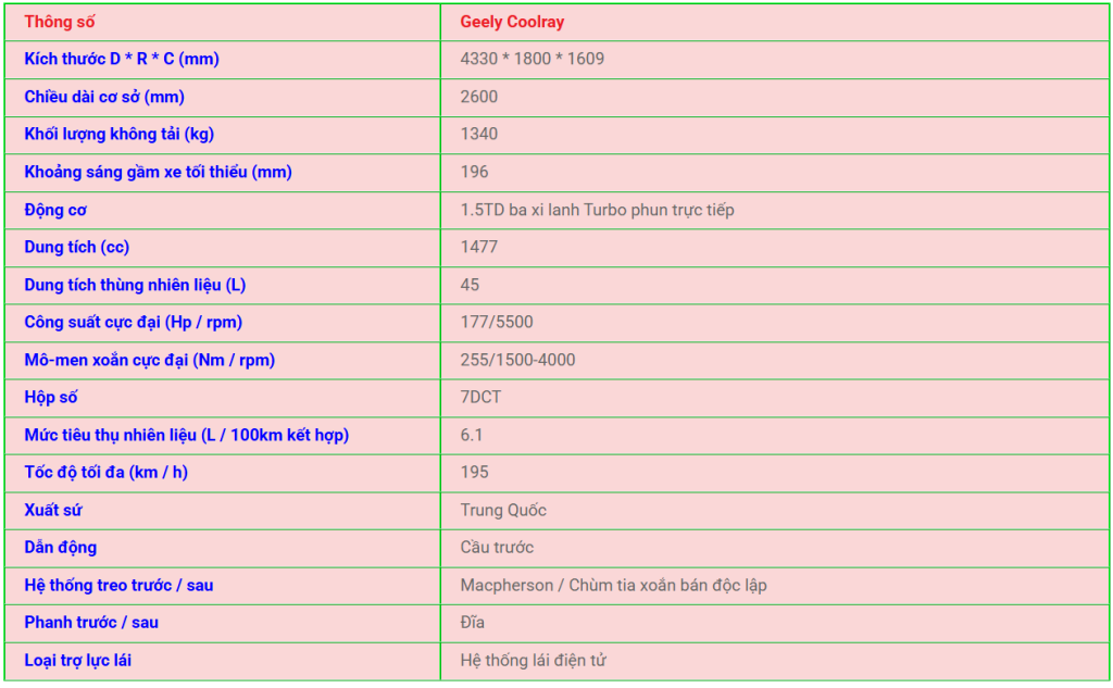 thong so ky thuat xe Geely Coolray